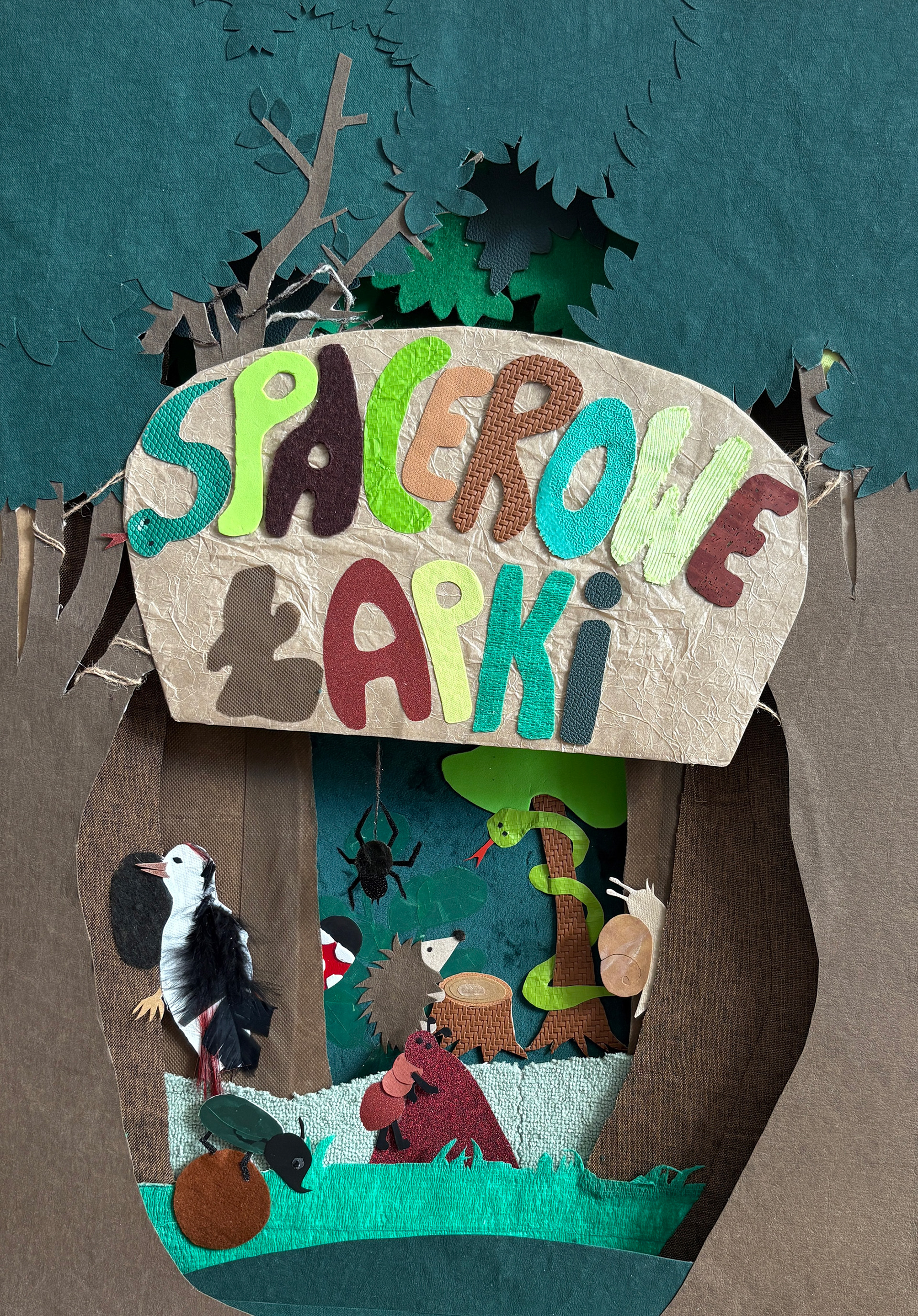 Las od zawsze był dla mnie miejscem odpoczynku, inspiracji i rozwijania wyobraźni. Spacer po leśnych ścieżkach, obserwowanie ruchu owadów, nasłuchiwanie śpiewu ptaków czy dotykanie chropowatej kory drzew to czynności pozornie proste, a jednocześnie niezwykle inspirujące. Ta wielozmysłowość stała się punktem wyjścia do stworzenia książeczki artystycznej dla dzieci pt. „Spacerowe łapki”. Tytuł nawiązuje do dziecięcej ciekawości świata i odkrywania przyrody krok po kroku – poprzez dotyk, obserwację i zabawę.
